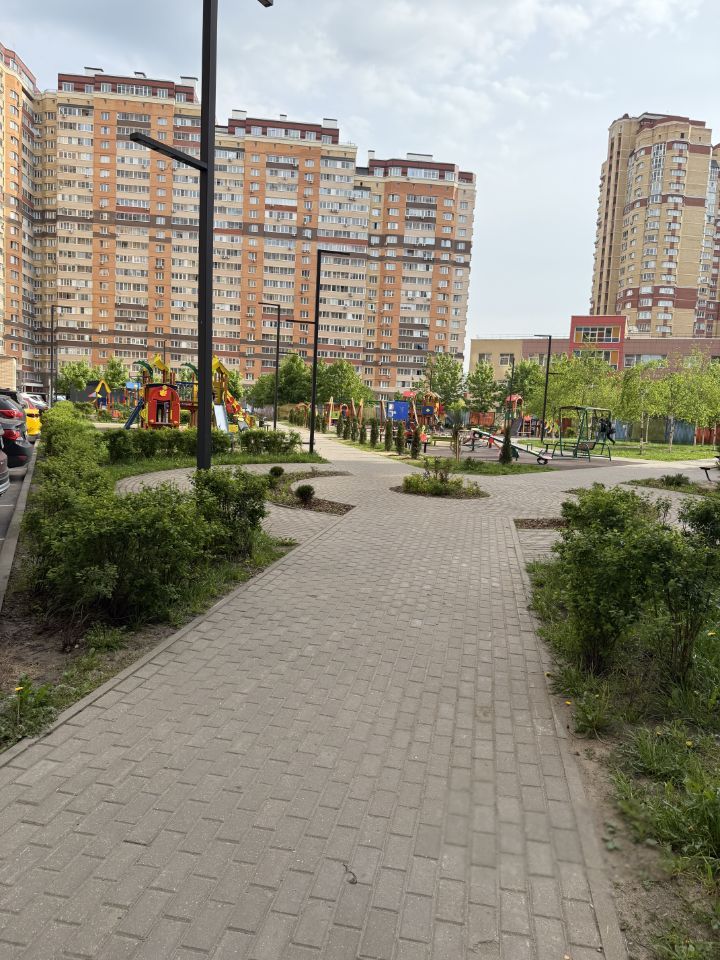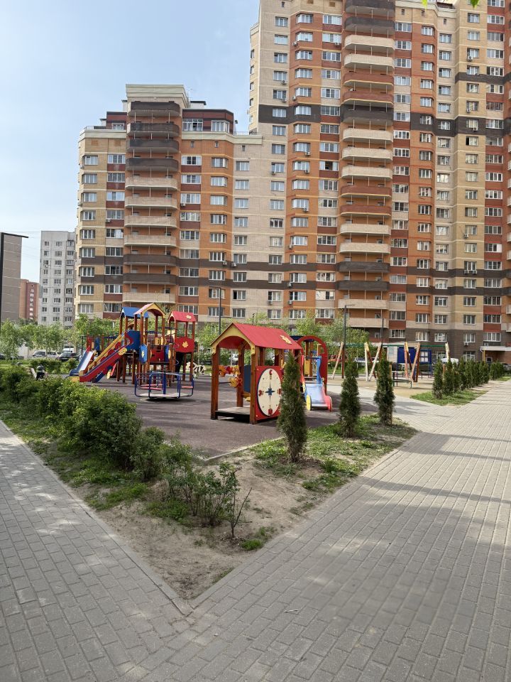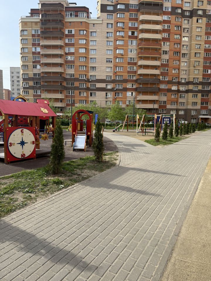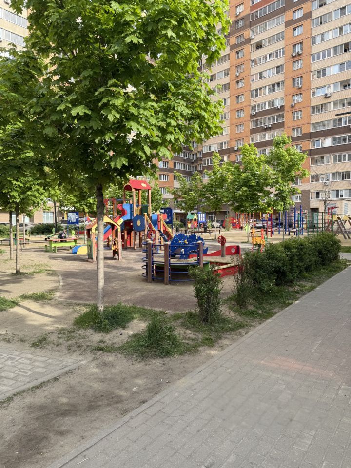Благоустроенный и ухоженный двор с многочисленными зелеными насаждениями (есть аллея с туями), 2 очень большие функциональные детские площадки. Также есть небольшая спортивная площадка.
